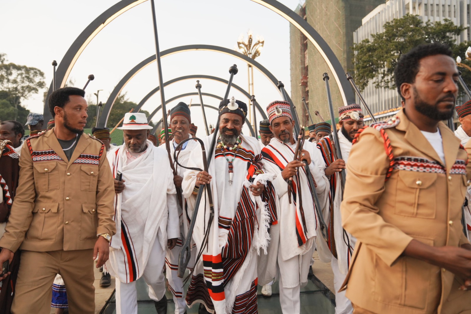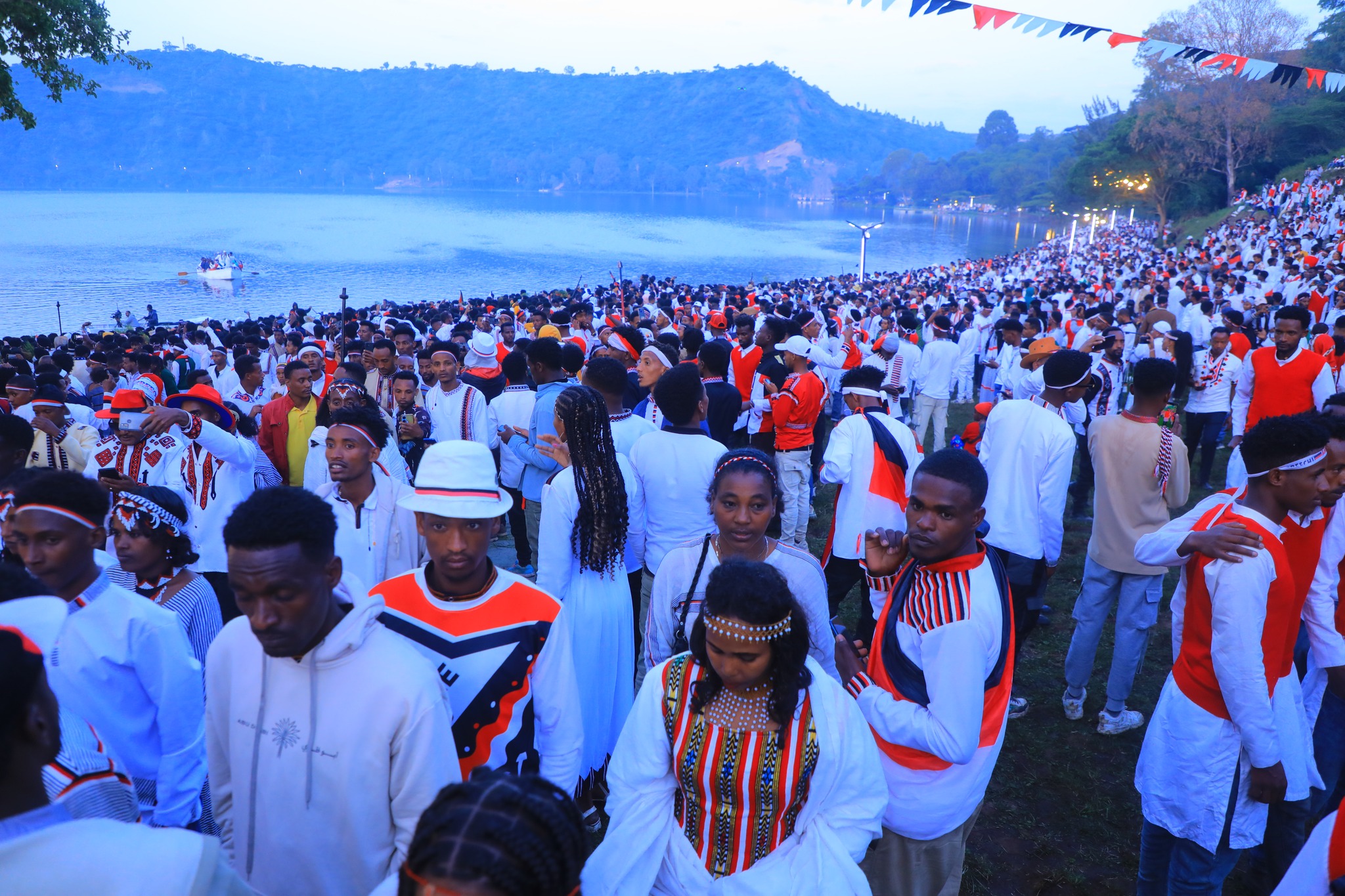 حيث تجمع في العاصمة الإثيوبية أديس أبابا للاحتفال بذكرى أريتشا يوم السبت الماضي ،وقد ارتدى العديد من المحتفلين الأقمشة التقليدية البيضاء والأزياء المزينة بالألوان الأسود والأحمر والأبيض.