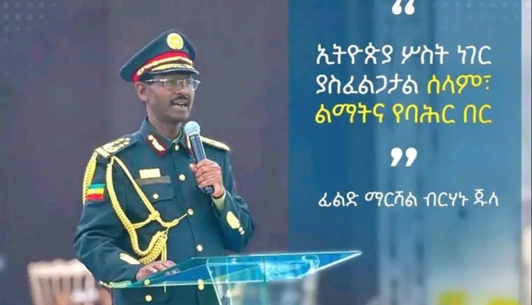 وأوضح المشير برهانو جولا أن إثيوبيا اليوم قد تجاوزت مرحلة الركود والانغلاق، وتسير بخطى ثابتة نحو تحقيق السلام والتنمية والازدهار، مؤكدا أن “ضمان الوصول إلى البحر يشكل ركيزة استراتيجية للنمو الوطني”. كما شدد على أن تعزيز قدرات الجيش يمثل أولوية لحماية المصالح الوطنية وضمان الأمن والاستقرار الداخلي.