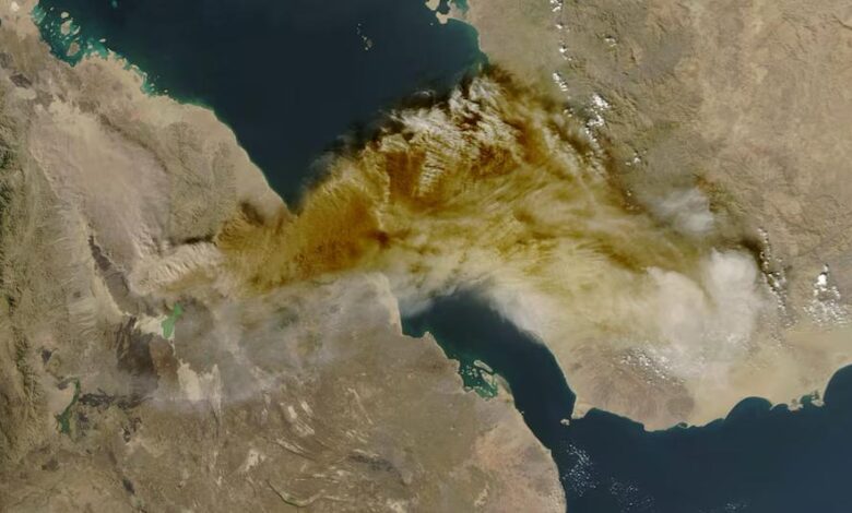 وتشير تقارير الأرصاد الجوية إلى أن ثوران بركان في إثيوبيا أدى إلى تصاعد سحب رمادية إلى ارتفاعات كبيرة، تحركت جنوب شرقاً لتغطي مسارات الطيران فوق اليمن وعُمان، قبل أن تتجه نحو مناطق في آسيا، مما دفع بعض شركات الطيران إلى تعديل مساراتها بشكل احترازي.