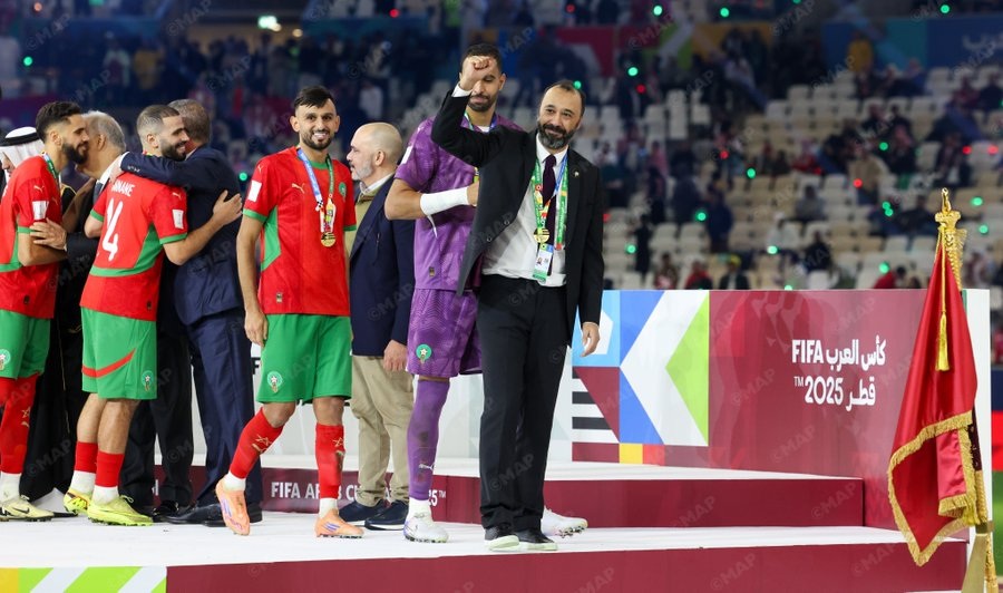 العاهل المغربي يهنئي أفراد المنتخب المغربي الفائز بكأس العرب 2025 في قطر.