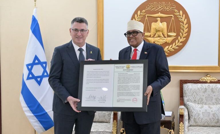 وقال ساعر في تغريدة على موقع “إكس” “إنه لشرف عظيم أن أقوم بأول زيارة دبلوماسية رسمية إلى أرض الصومال، بدعوة من رئيسها”، مضيفا “نحن عازمون على تعزيز العلاقات بين إسرائيل وأرض الصومال بقوة. وقد أجرينا اليوم مباحثاتٍ جوهرية مع الرئيس وكبار أعضاء حكومته حول كافة جوانب علاقاتنا”.